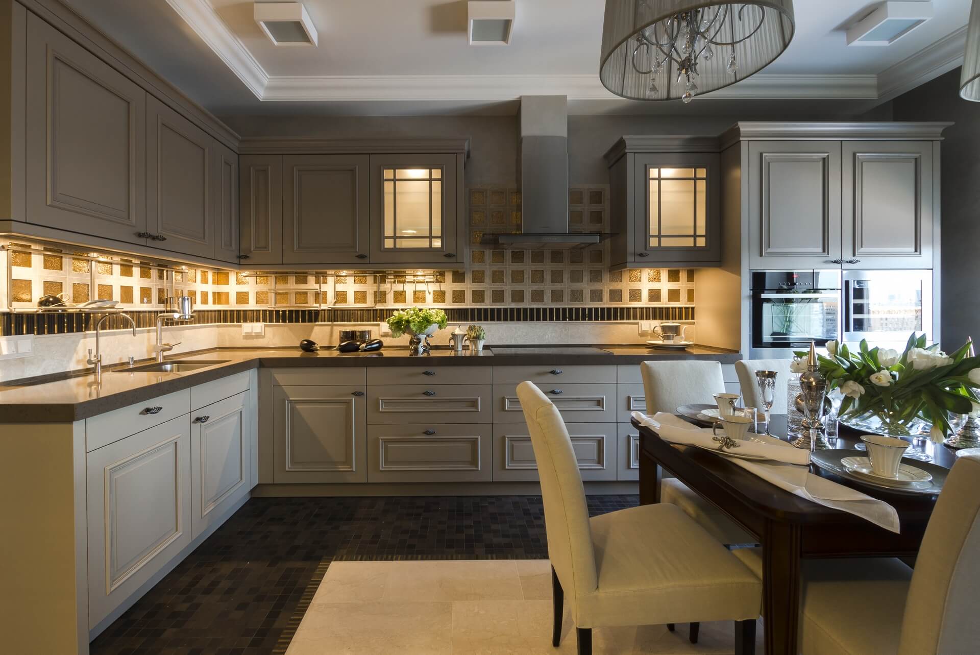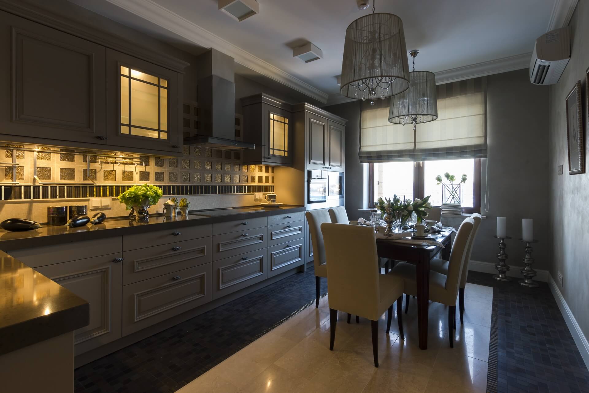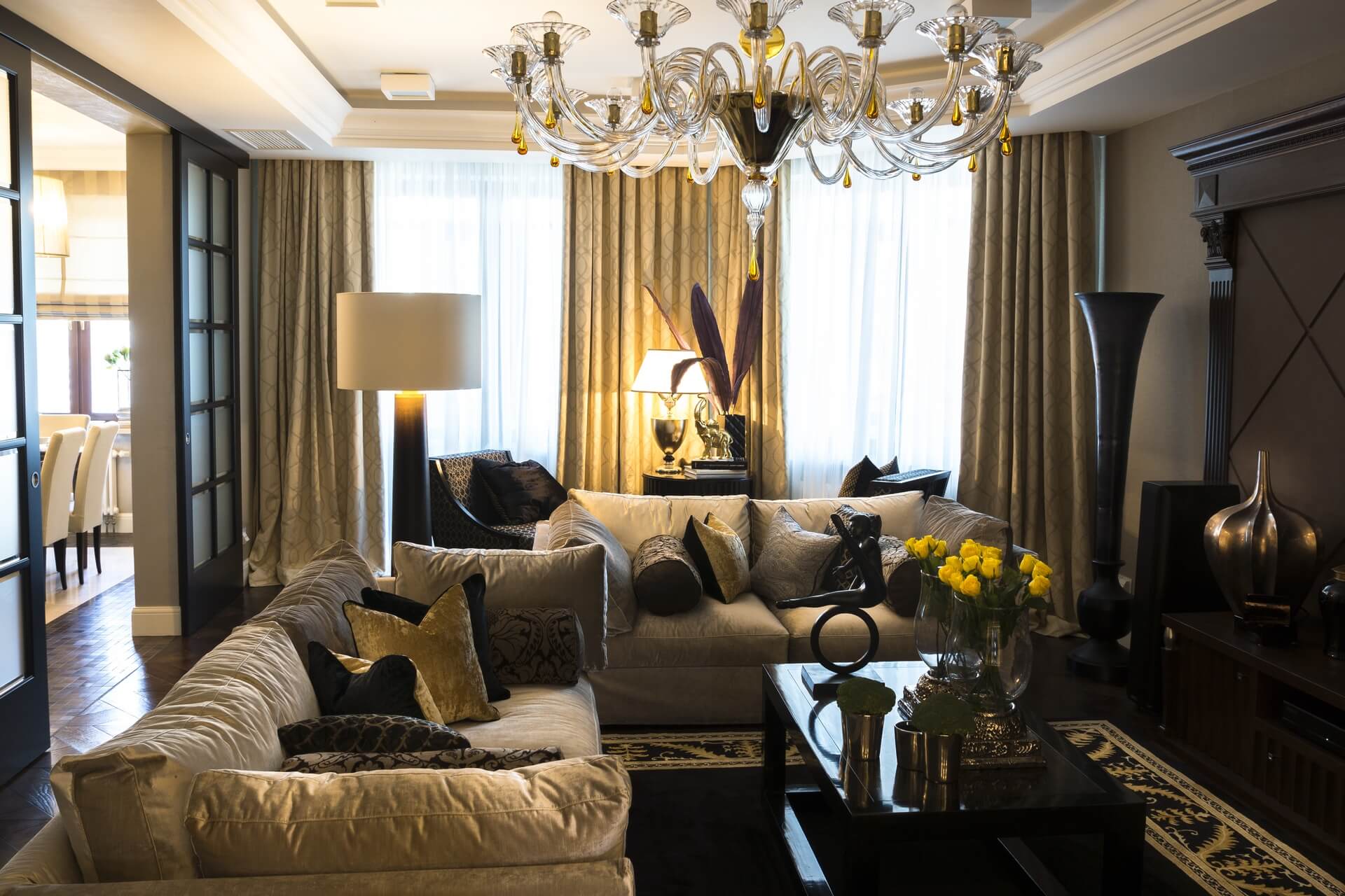 Изначально клиентам понравился дизайн квартиры в стиле современная классика. Исходя из этой концепции, мы начали работу проектом. Но чем дальше мы проектировали, тем больше проект приобретал элементы ар деко, материалы менялись в сторону более изысканных сочетаний.