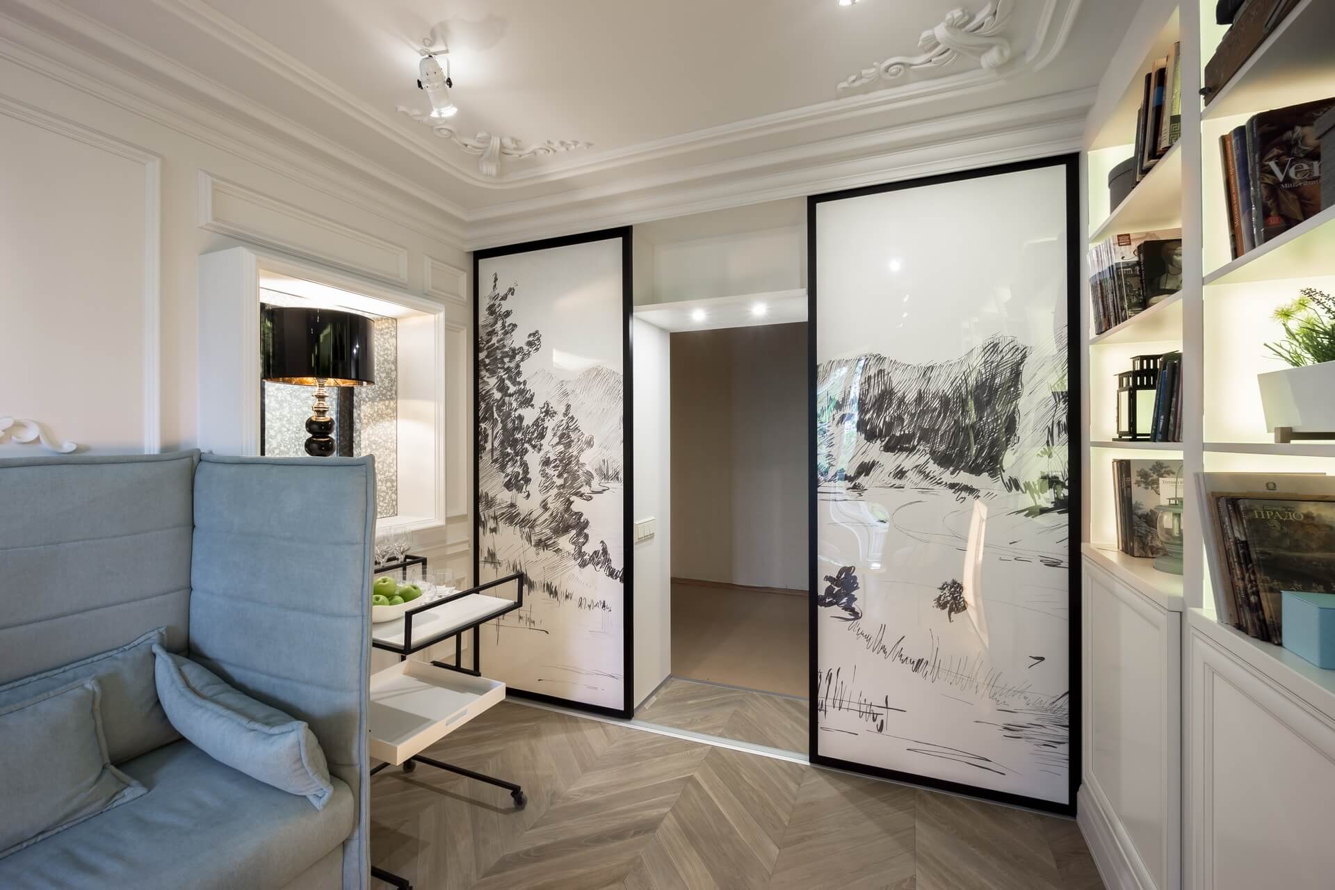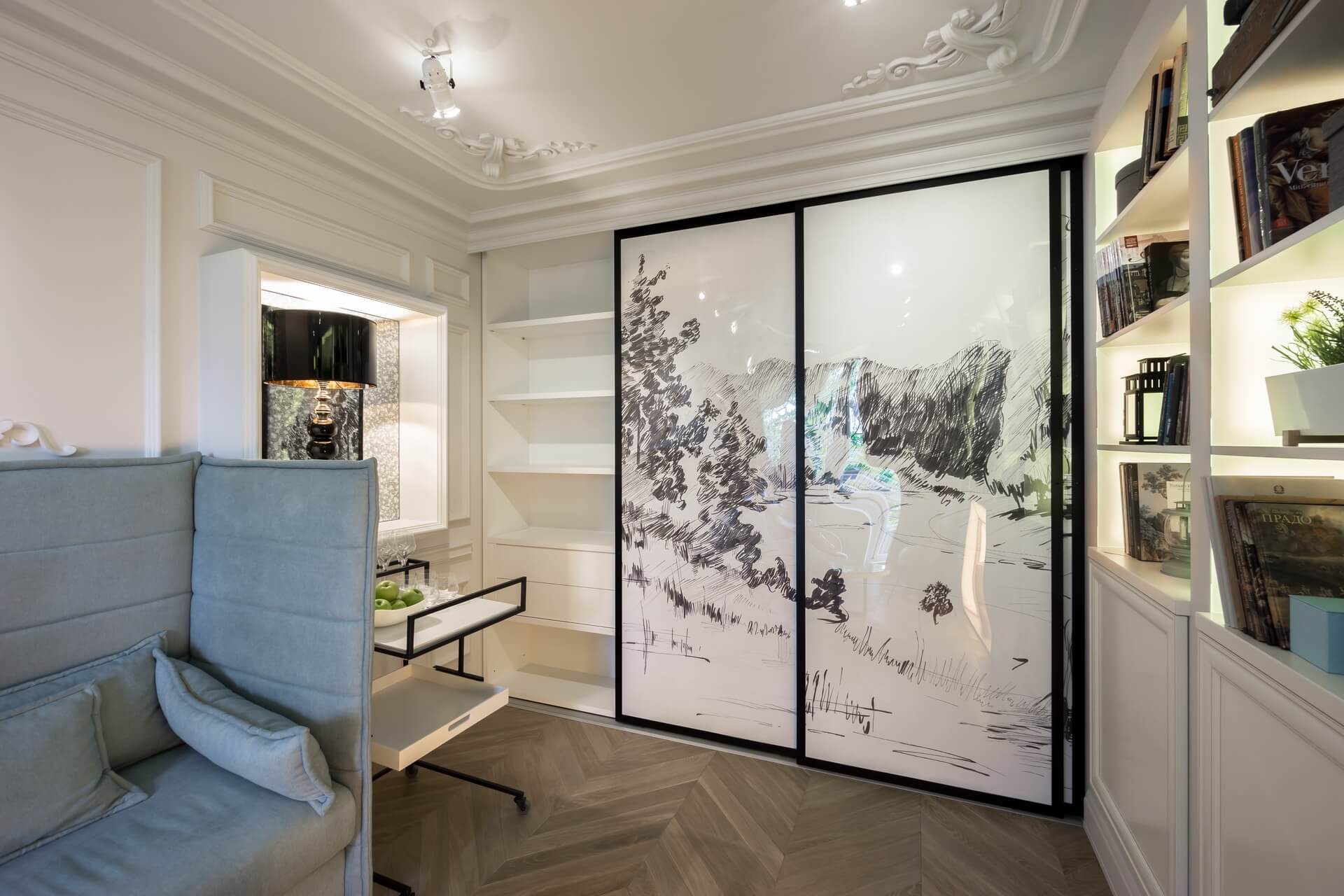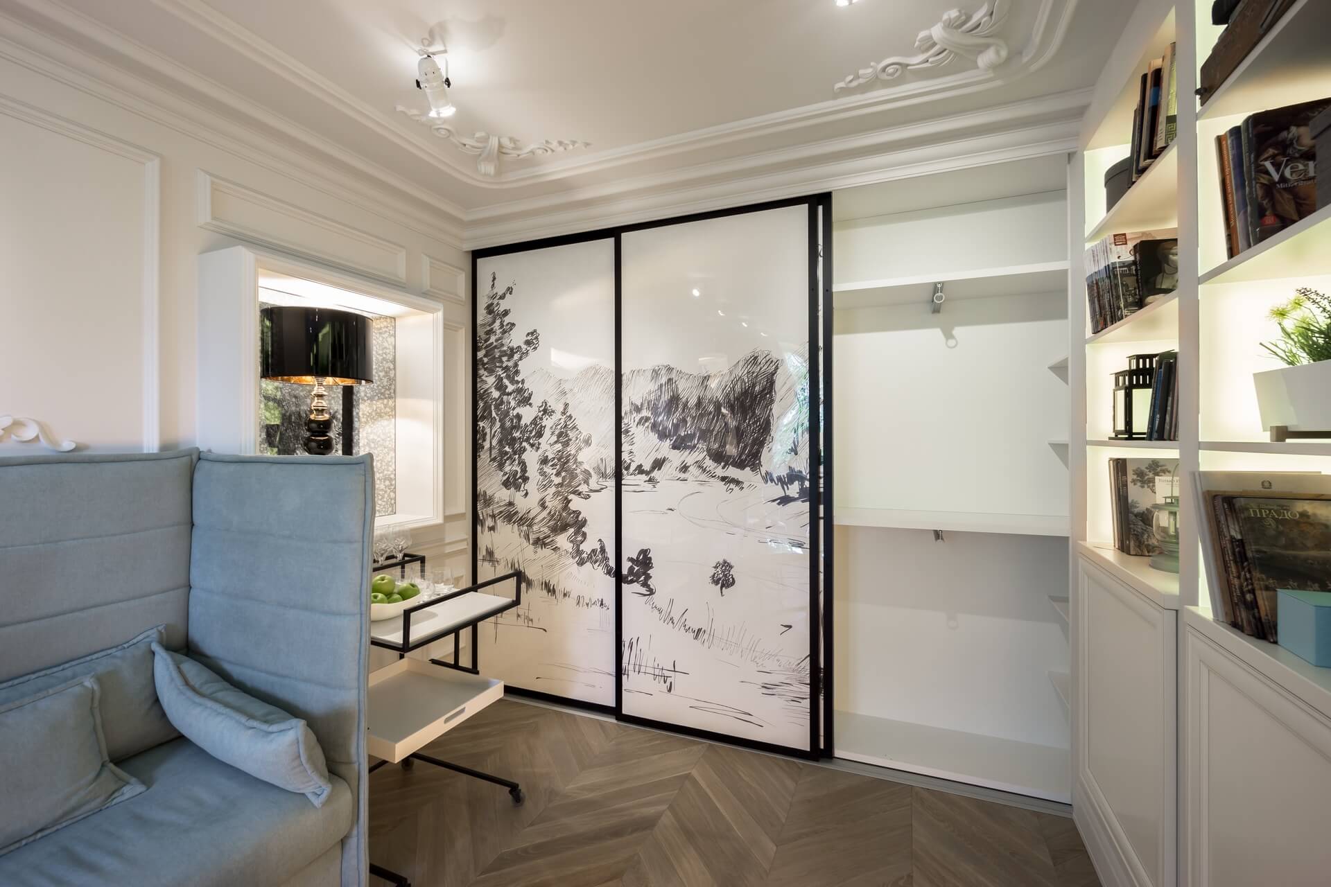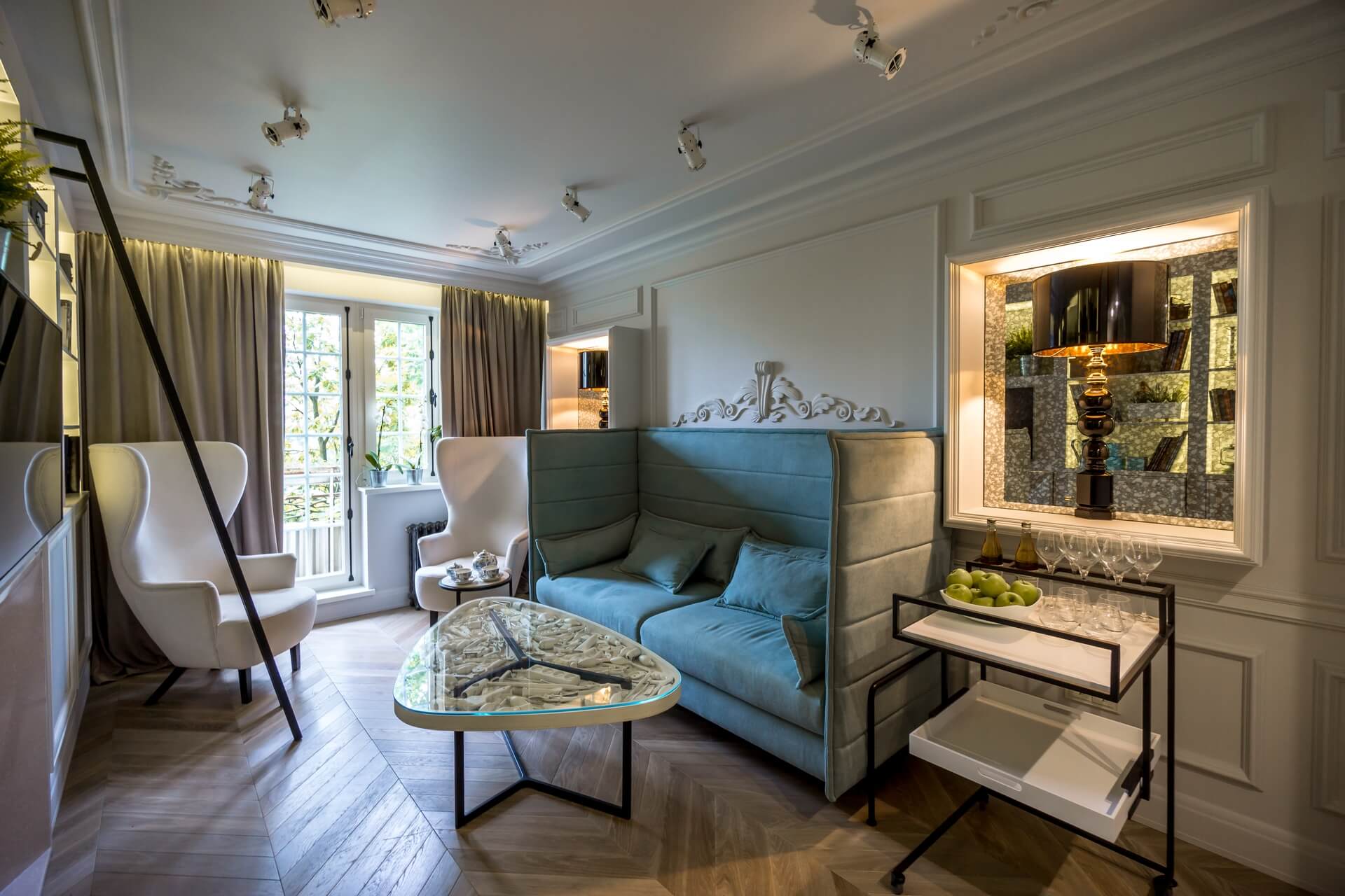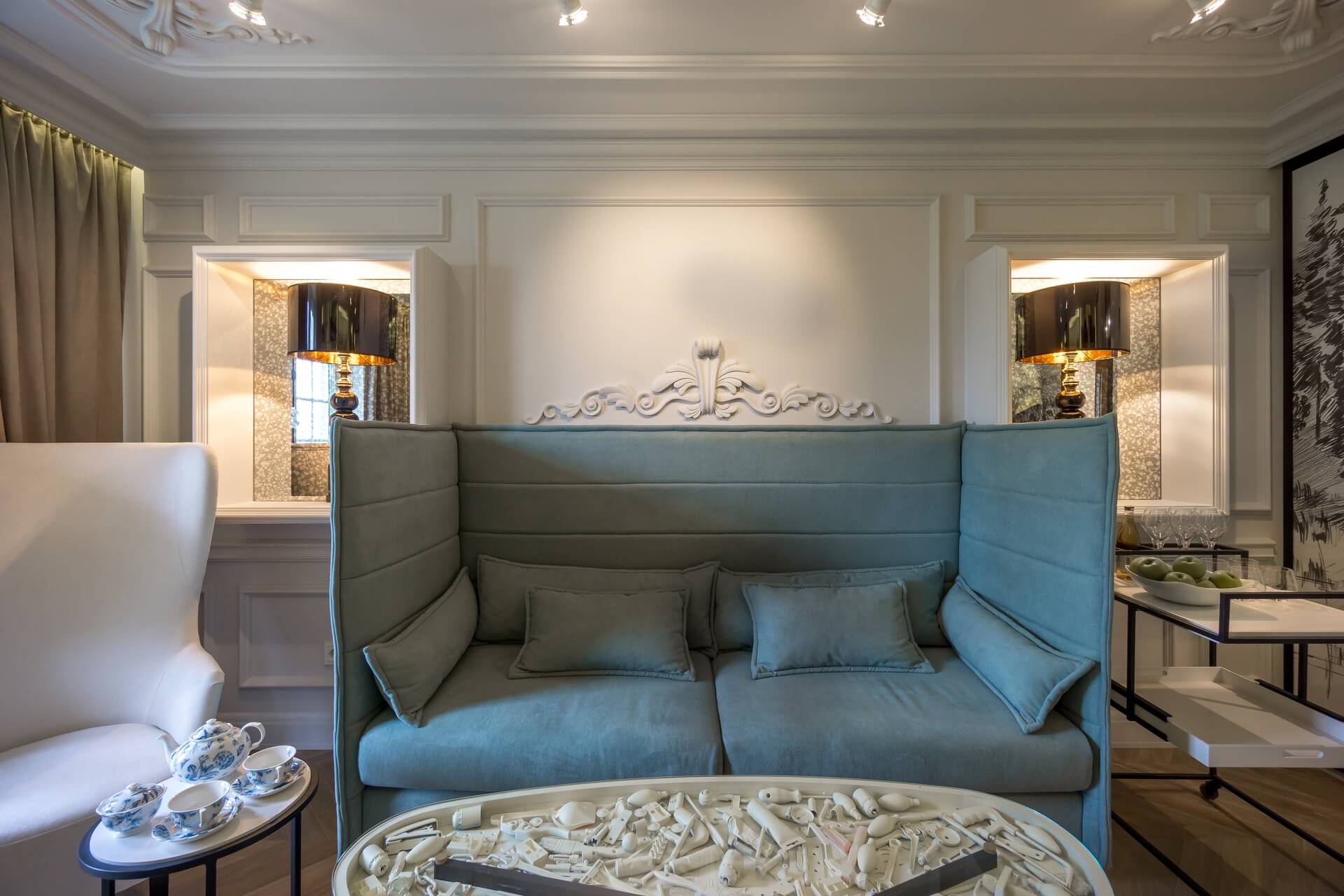 Этот проект мы создавали для программы «Квартирный вопрос» канала НТВ. Нашими героями стали художники обожающие дворцовый стиль. Мы немного «поиграли» с этой страстью и создали довольно спокойный интерьер с голландскими и французскими элементами. В акцентах мы добавили немного юмора и нашли оригинальное применение талантам героев.