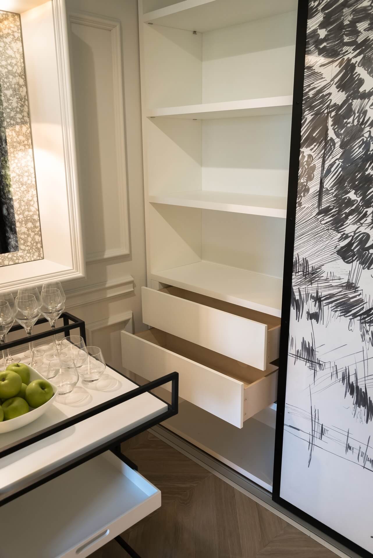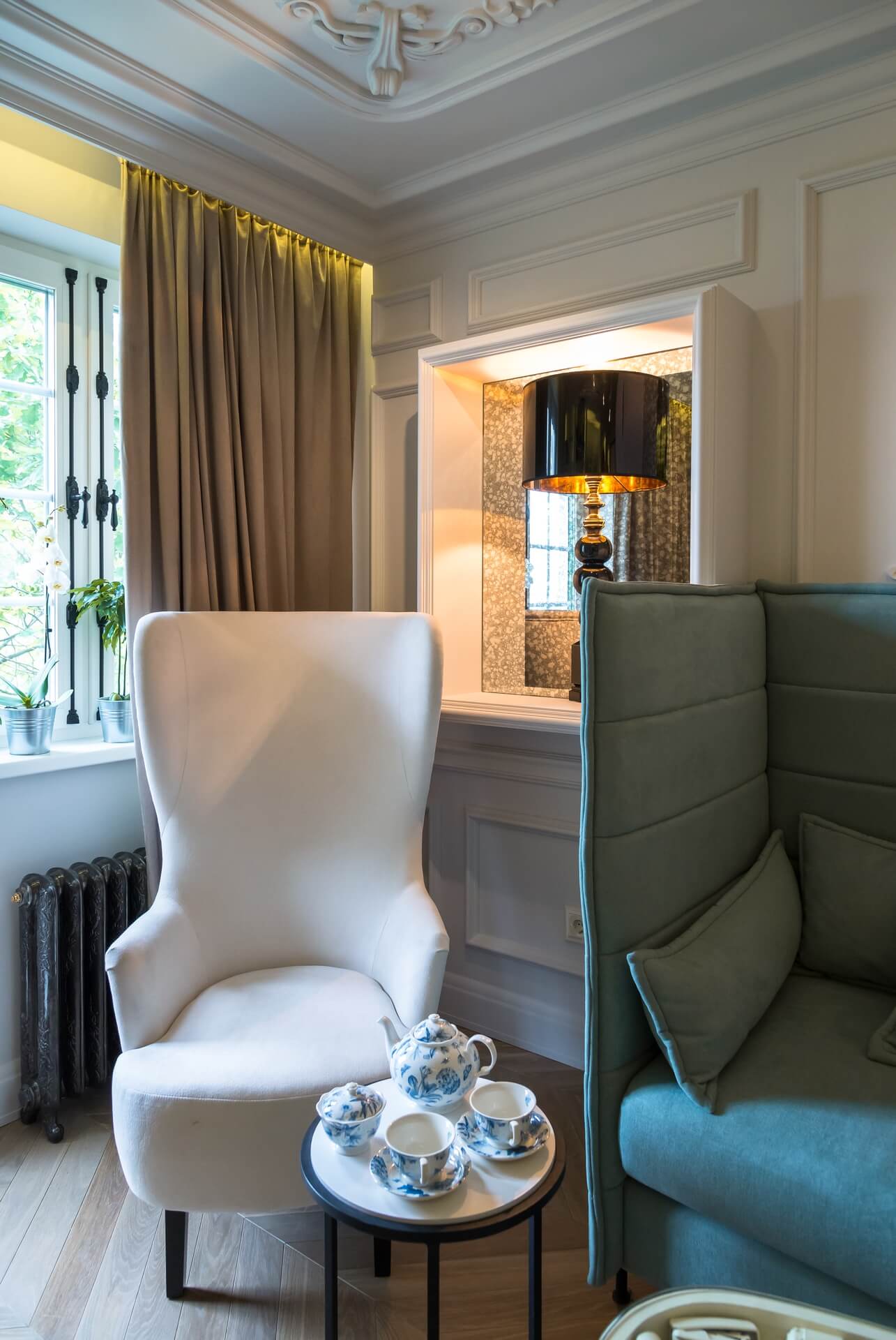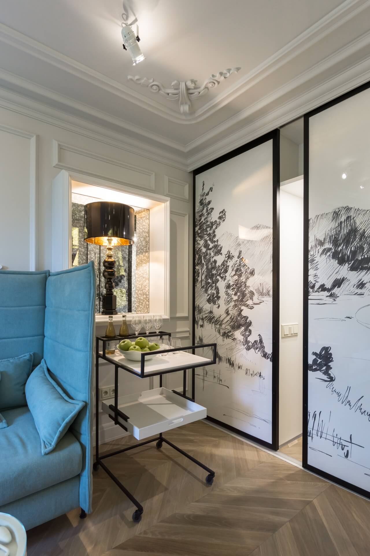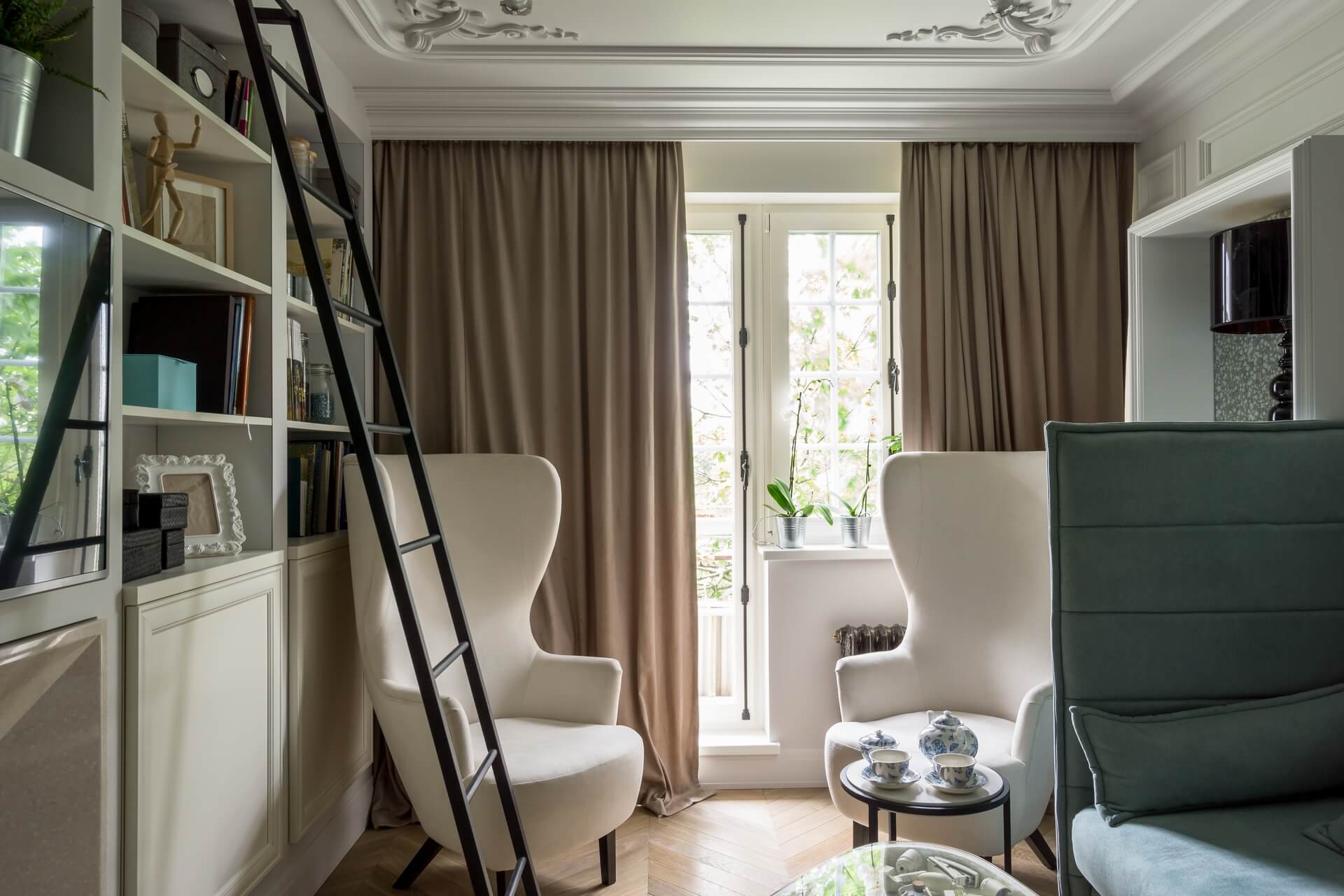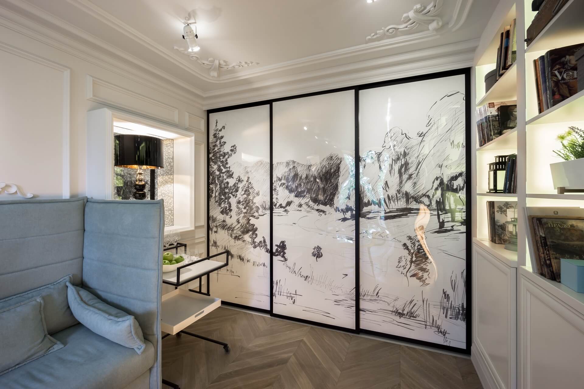 Этот проект мы создавали для программы «Квартирный вопрос» канала НТВ. Нашими героями стали художники обожающие дворцовый стиль. Мы немного «поиграли» с этой страстью и создали довольно спокойный интерьер с голландскими и французскими элементами. В акцентах мы добавили немного юмора и нашли оригинальное применение талантам героев.