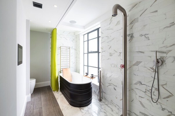«История дома. Пентхаус, расположенный на пятом и шестом этажах дома 1920-х годов, находится в лондонском районе Маленькая Венеция (Little Venice). Интерьеры квартиры созданы дизайнерами девелоперского бюро Yoo, основанного Филиппом Старком.