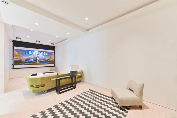 8. Домашний кинотеатр. Самый светлый из всех, когда-либо виденных мной. Несмотря на это в данном контексте он вполне актуален. Современности ему придает легкая конструкция с подсветкой на потолке.