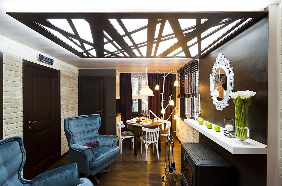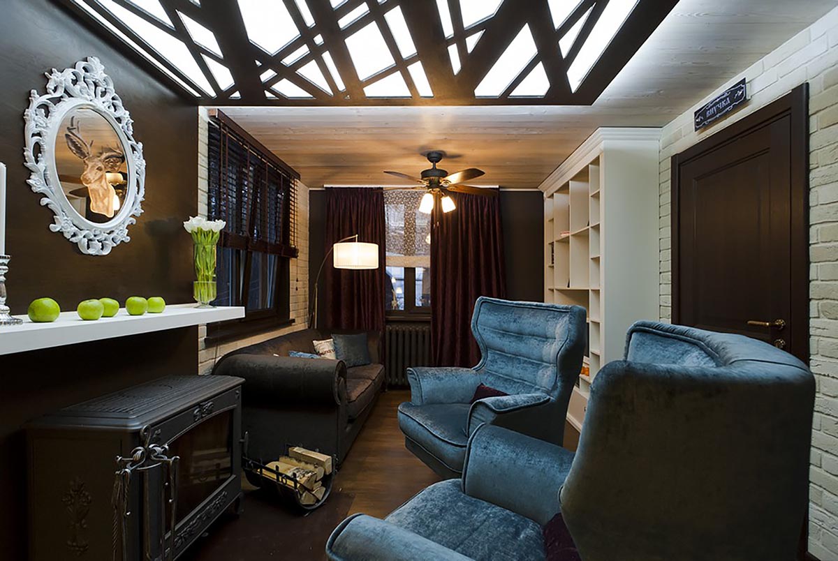 Особых пожеланий у семьи не было. Хотелось просто обновления в этой старой комнате, отделанной вагонкой. Правда, особое оживление вызвал наш вопрос про камин. Оказывается, они давно о нем мечтали.