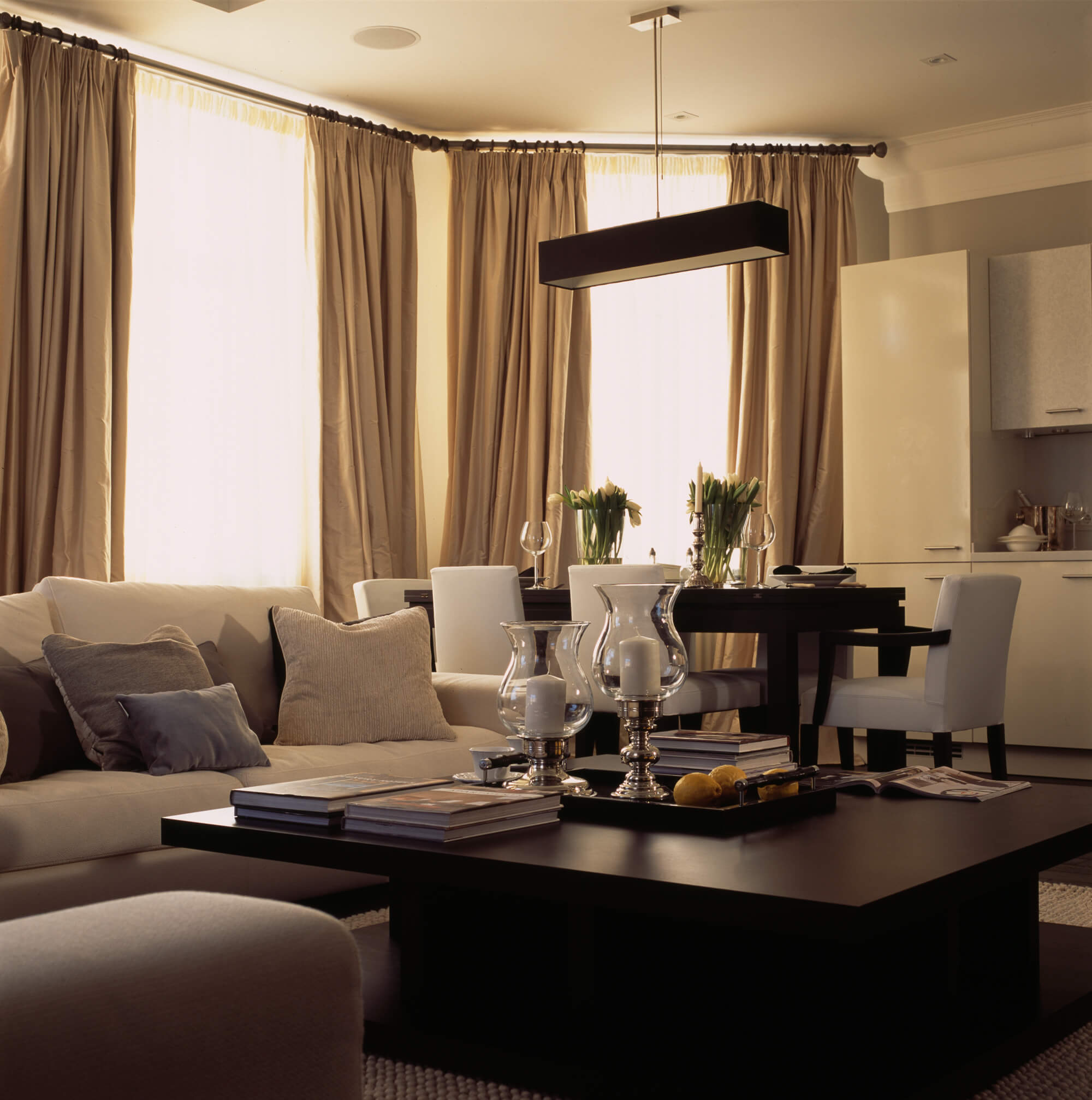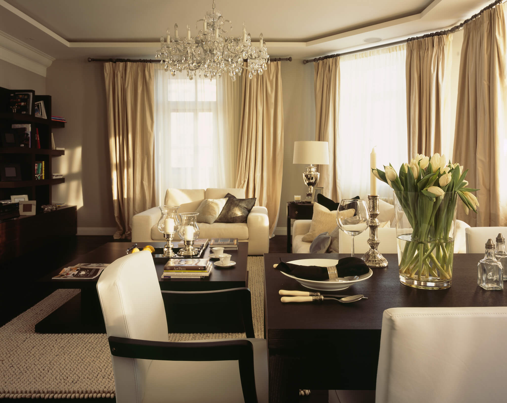 Создать в интерьере ощущение полета – с такой нелегкой задачей столкнулась дизайнер Варвара Зеленецкая, начиная работу над этим проектом. А через полгода оформление квартиры площадью 120м2 было уже завершено. Основным компонентом дизайна стал…воздух. Визуальное расширение пространства достигнуто за счет светлой гаммы, широких окон и многочисленных зеркальных поверхностей.