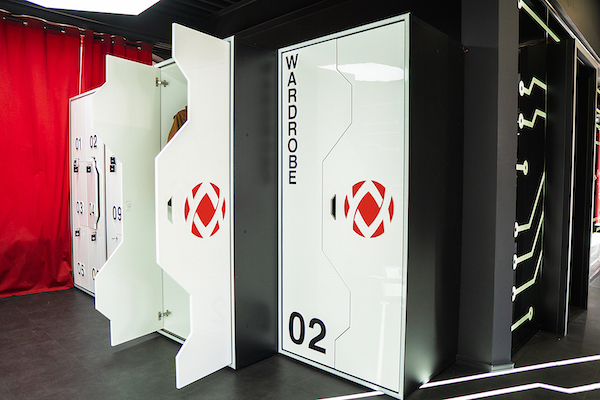 Все элементы интерьера — стойка ресепшн, шкафы-локер, стенды для оборудования — были разработаны дизайнерами студии специально для данной франшизы.