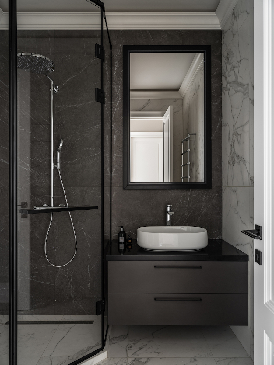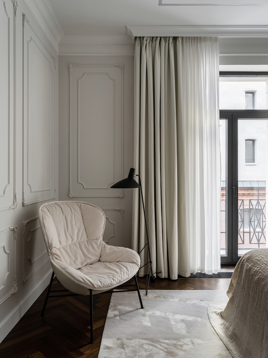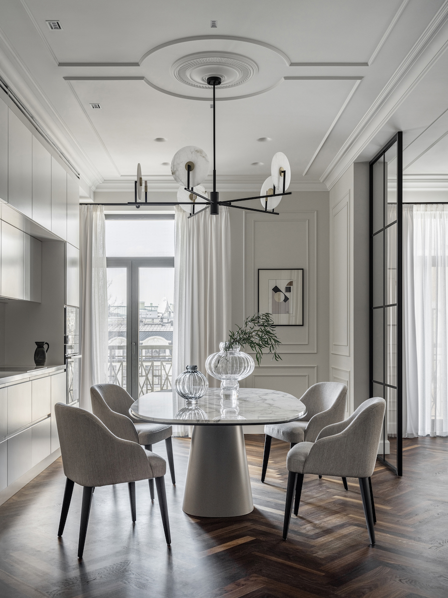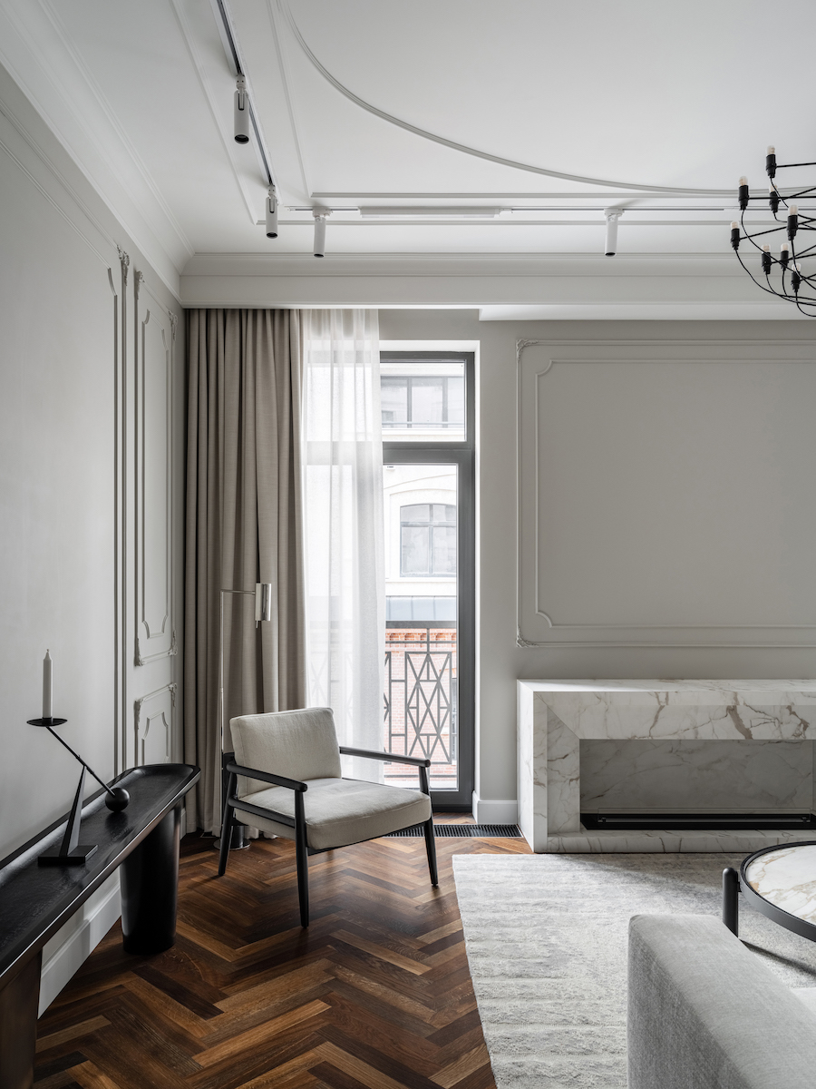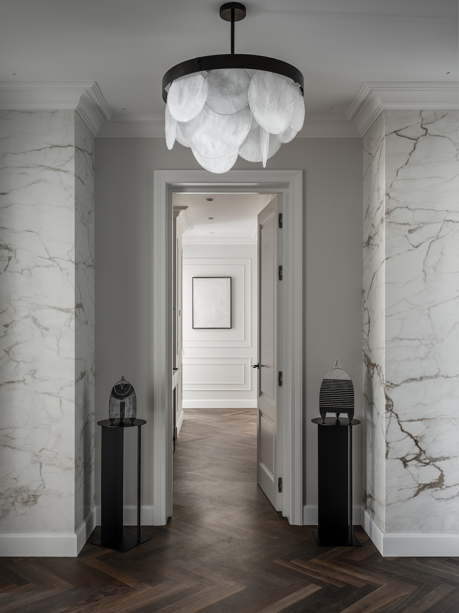 Воплощение элегантности и гармонии: Квартира в ЖК «Софийский». Современная классика с черными графическими акцентами, классическими элементами и мебелью в современном стиле. Особое внимание к каждой детали — интерьер, отражающий утонченность и комфорт.