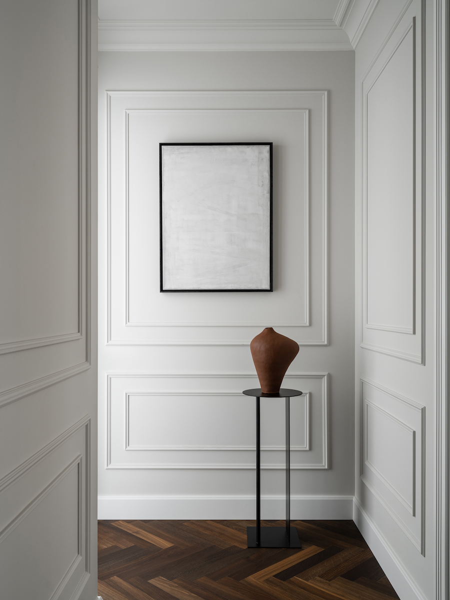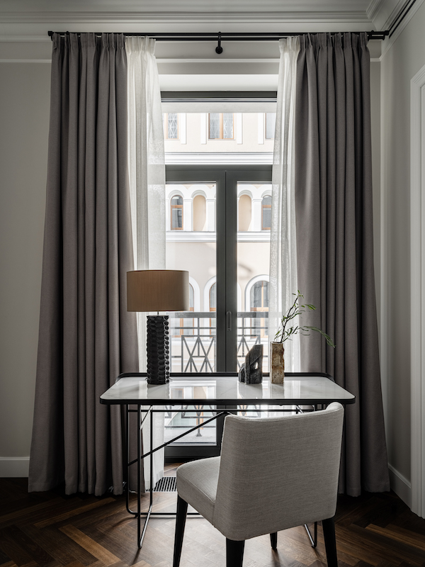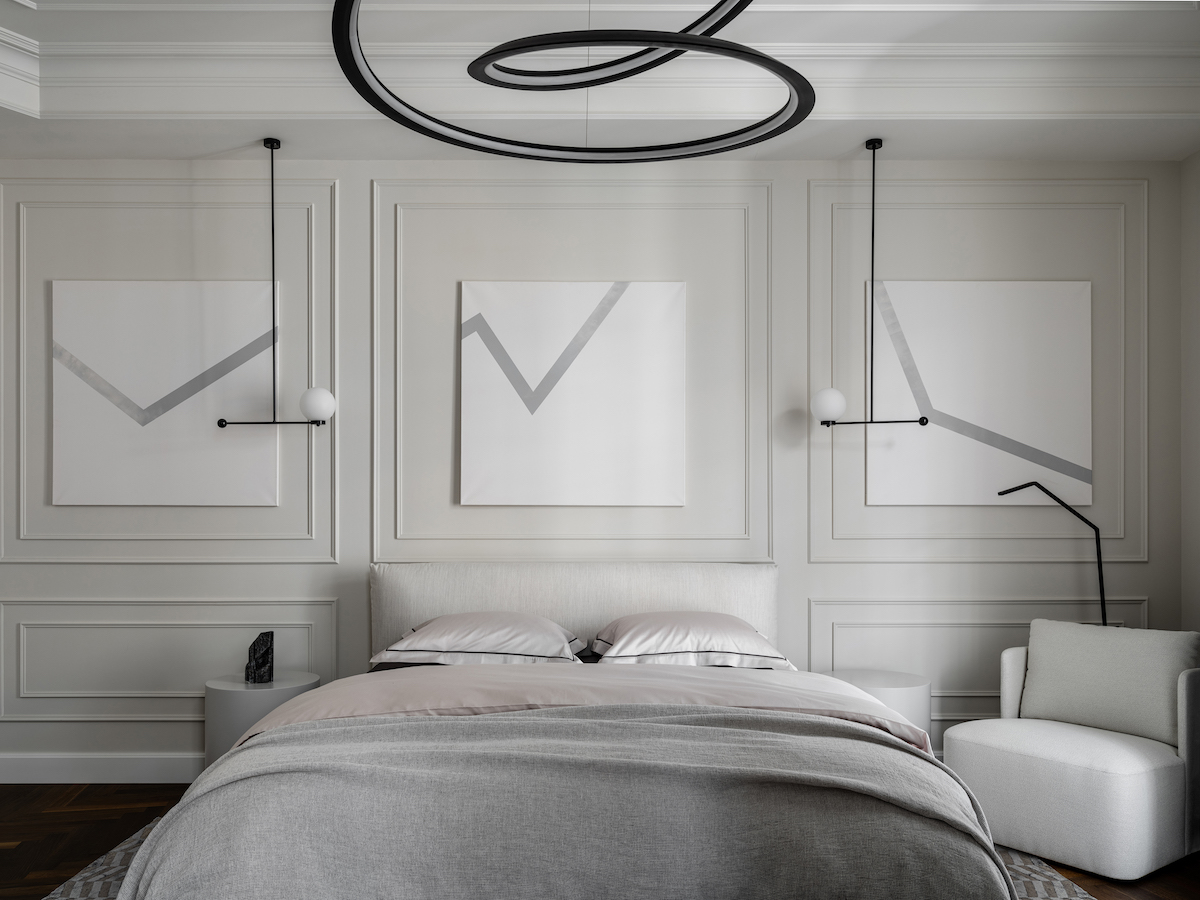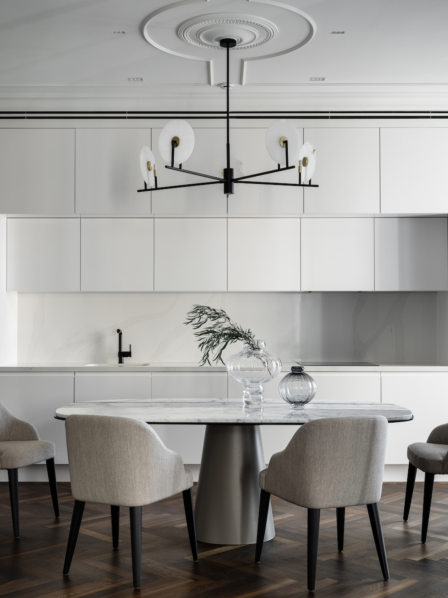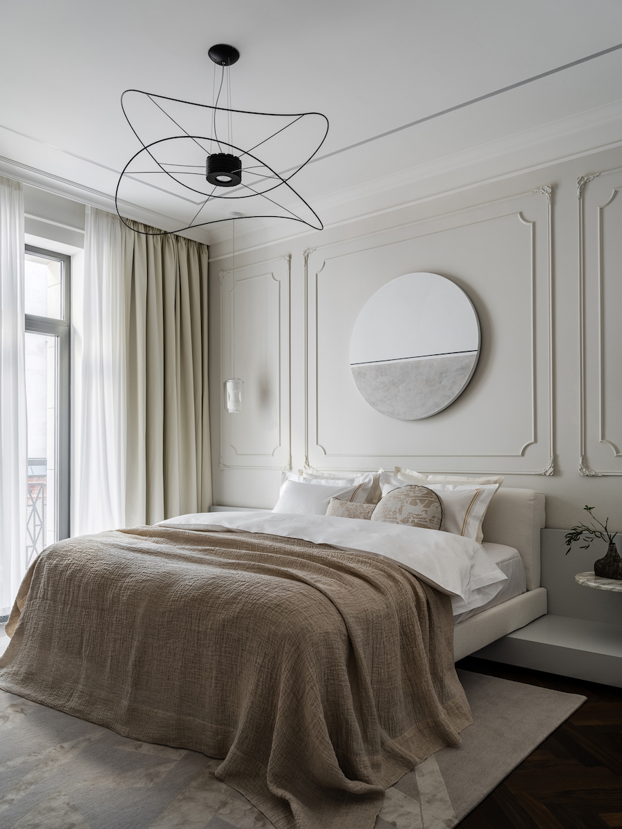 Воплощение элегантности и гармонии: Квартира в ЖК «Софийский». Современная классика с черными графическими акцентами, классическими элементами и мебелью в современном стиле. Особое внимание к каждой детали — интерьер, отражающий утонченность и комфорт.