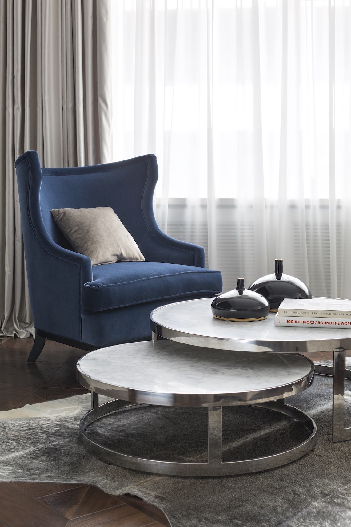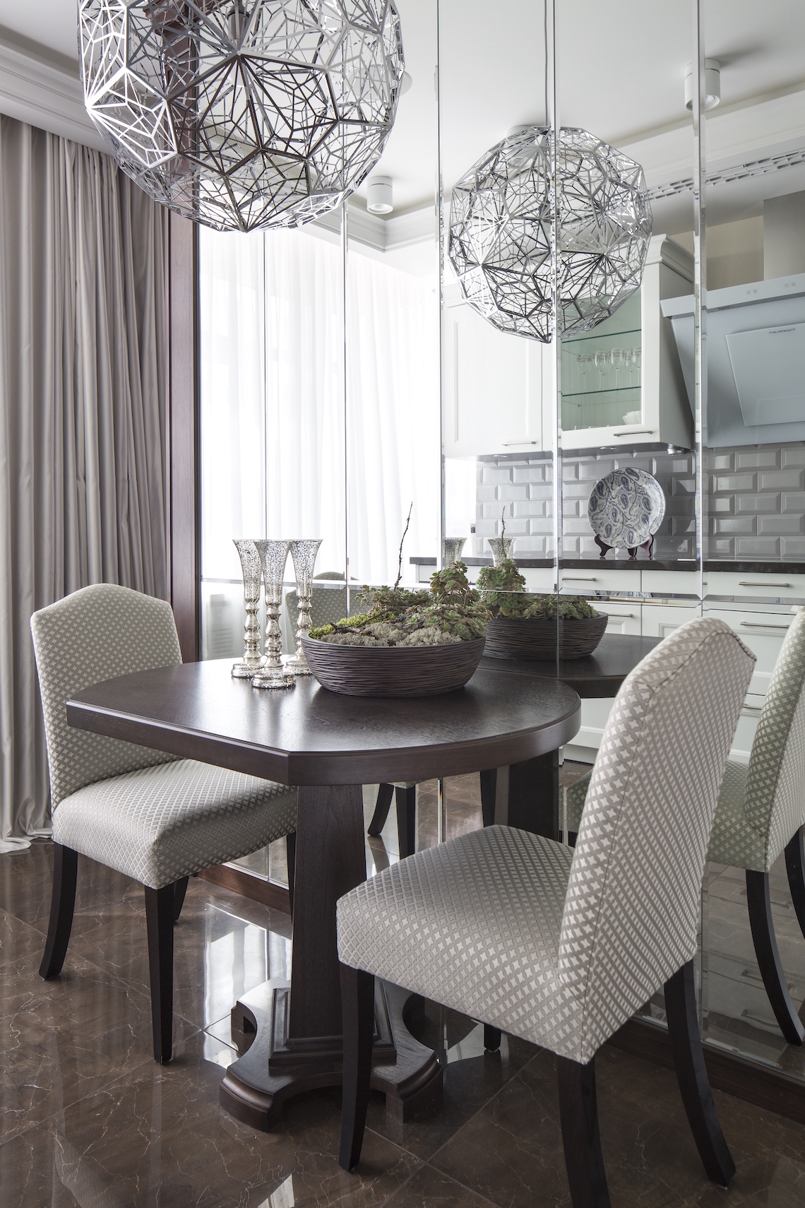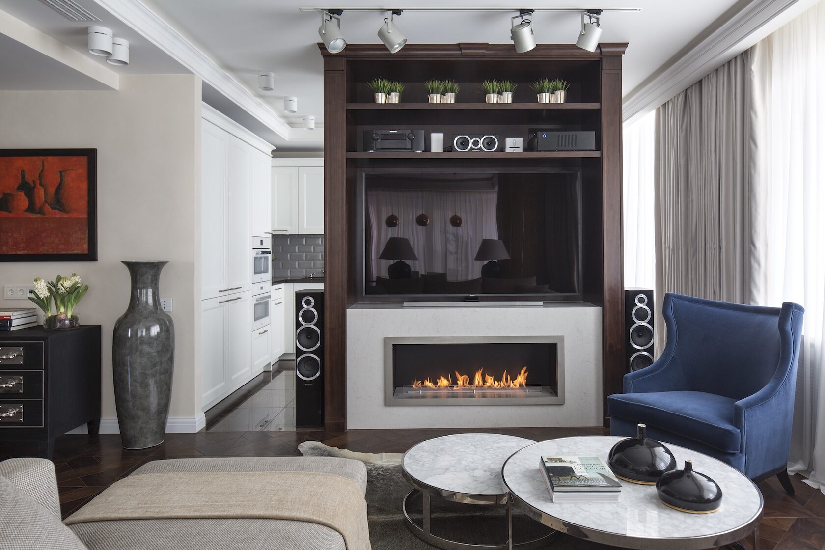 Эта 185-метровая квартира на Озерковской набережной стала результатом увлекательного сотрудничества молодой творческой пары с дизайнерами из «Мастерской интерьеров Варвары Зеленецкой». Желание объединить стили фьюжн, современной классики и нью ар-деко, а также воплотить сложные планировочные решения требовали креативности и аккуратности.