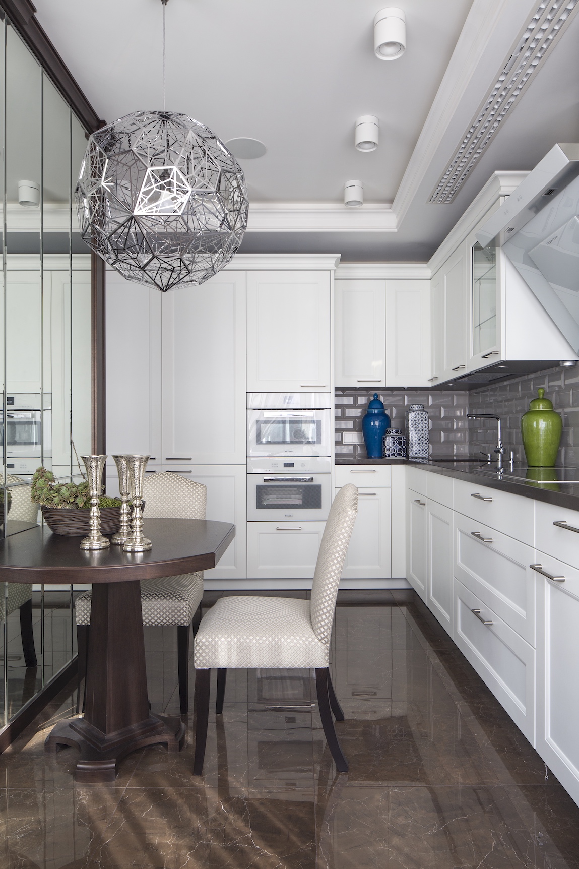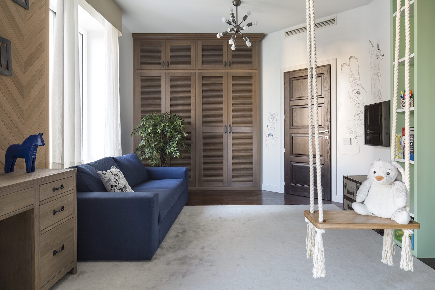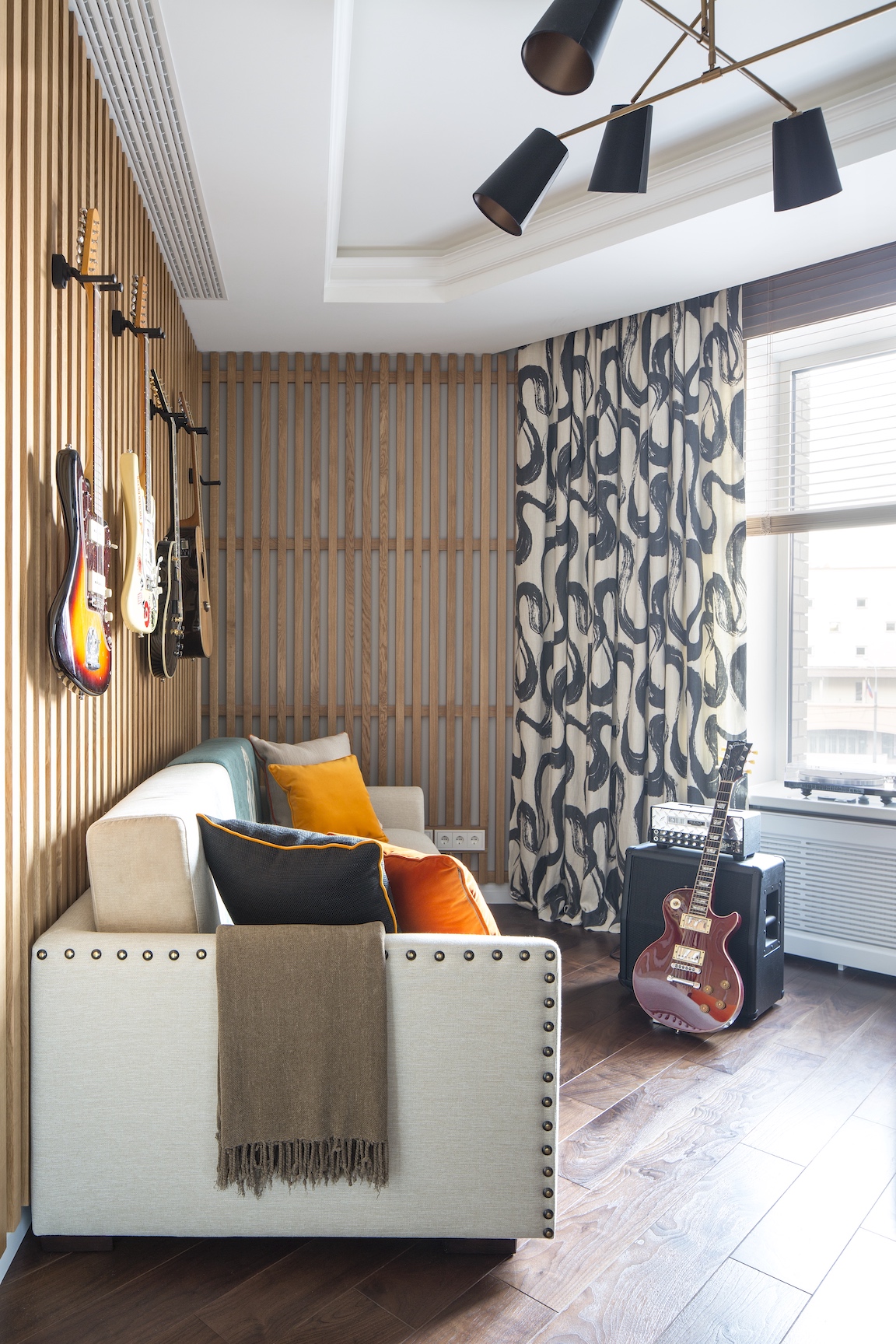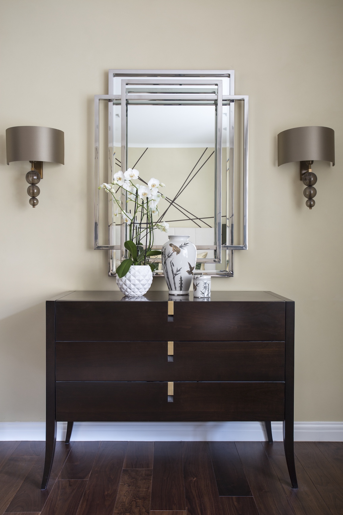 Эта 185-метровая квартира на Озерковской набережной стала результатом увлекательного сотрудничества молодой творческой пары с дизайнерами из «Мастерской интерьеров Варвары Зеленецкой». Желание объединить стили фьюжн, современной классики и нью ар-деко, а также воплотить сложные планировочные решения требовали креативности и аккуратности.
