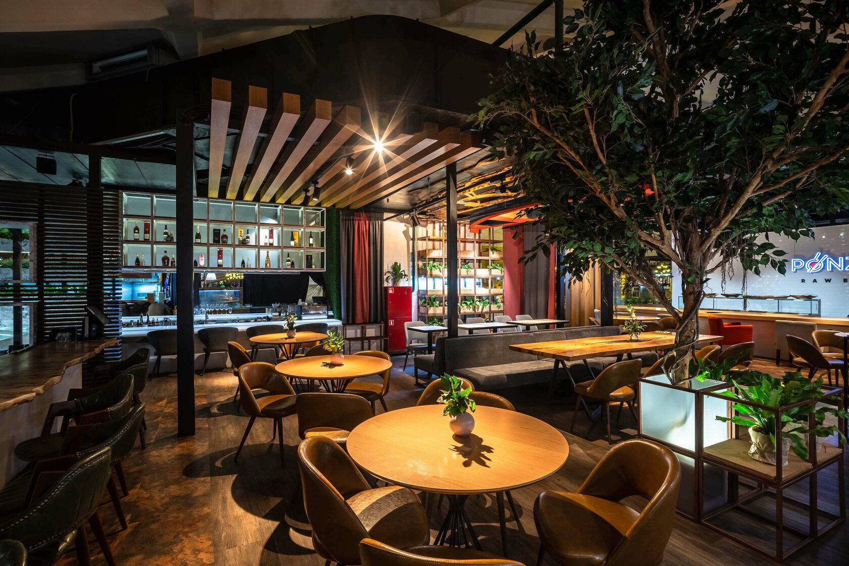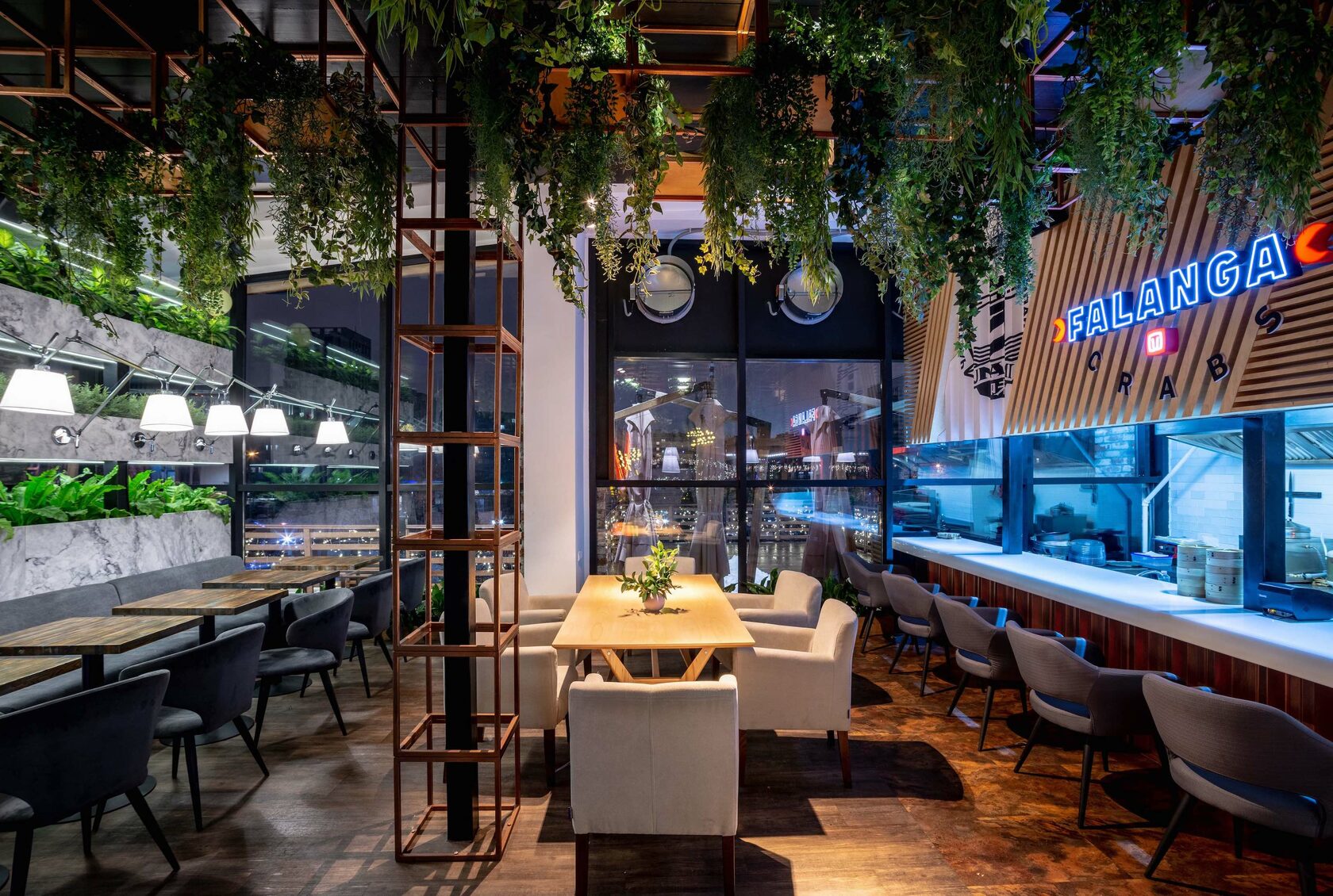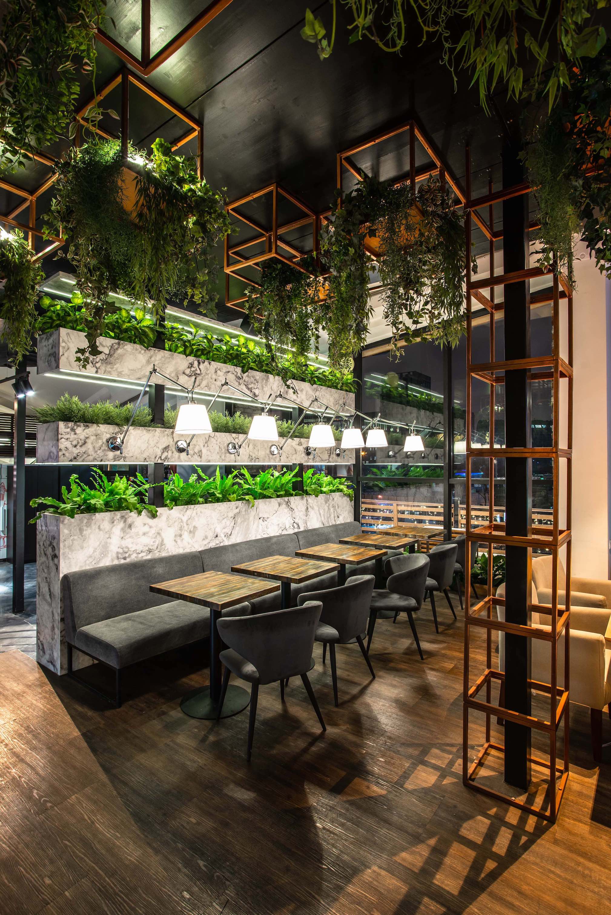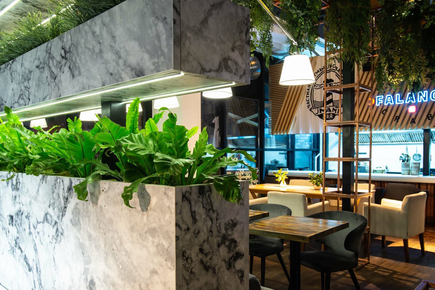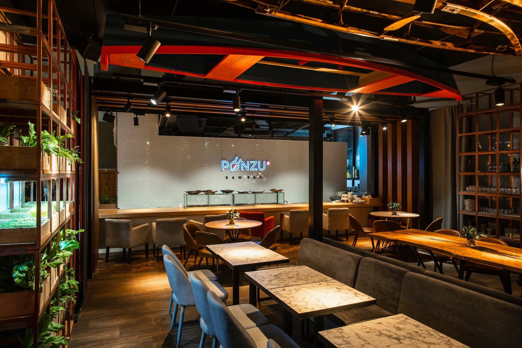 Концепция ресторана UMAMI заключалась в создании антуража улицы с паназиатской кухней во всем ее разнообразии от суши-баров до лапшичных.