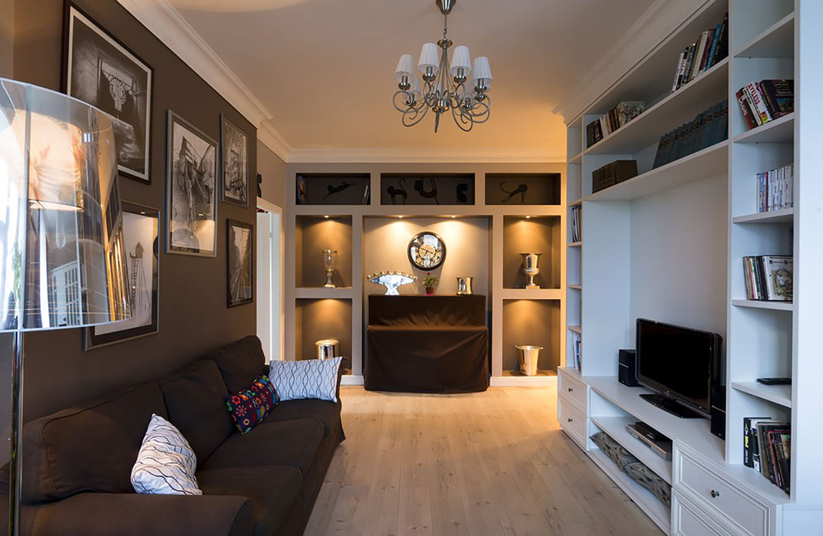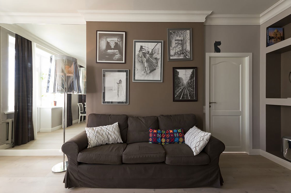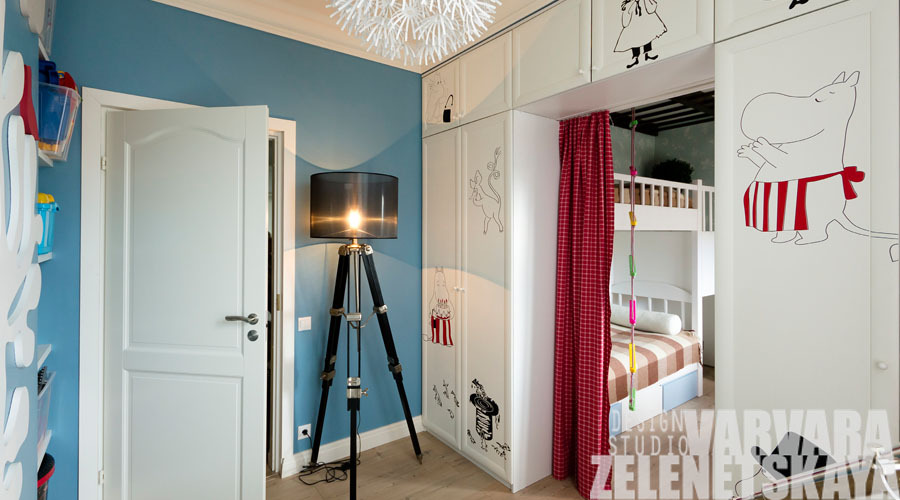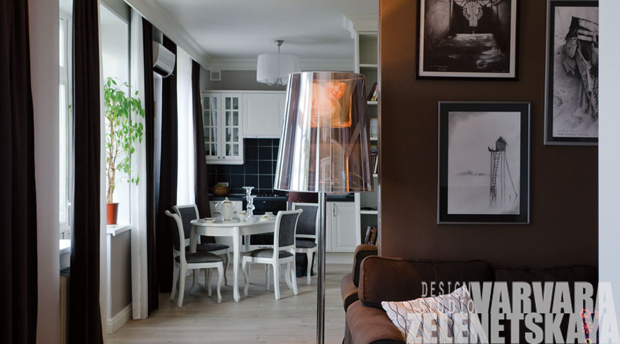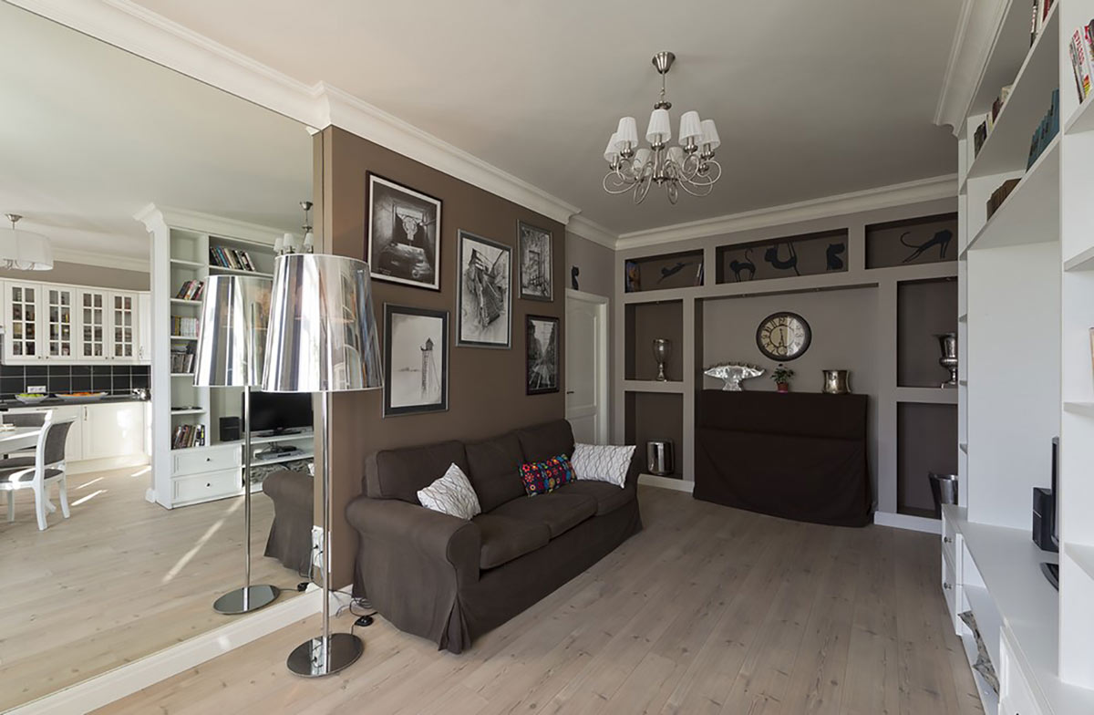 Интерьер этой квартиры выполнен в стиле «неоклассика» с использованием скандинавских мотивов.